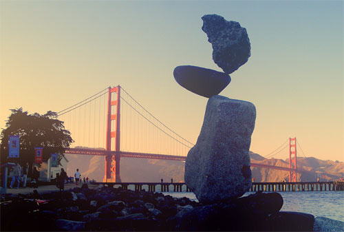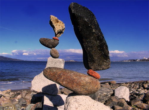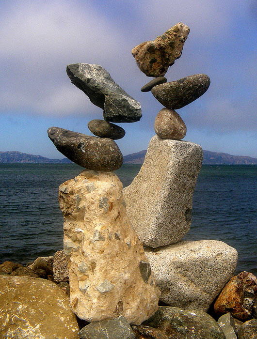 Rock balancing-as well as the approaches above-can also be a performance art, a spectacle, or a devotion, depending upon the interpretation by its audience. Essentially, it involves placing some combination of rock or stone in arrangements which require patience and sensitivity to generate, and which appear to be physically impossible while actually being only highly improbable.